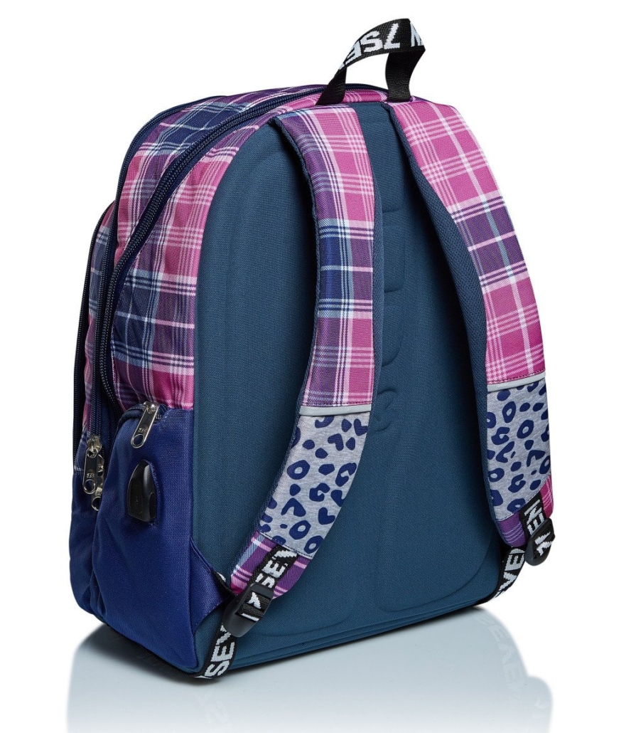 Quanto stile in Cheer Girl, lo zaino Seven con patch in vernice glitter e dotato di moschettone staccabile ideale per affrontare le tue giornate piene di impegni. Nell’ampio doppio scomparto con apertura facilitata tramite zip distribuisci ottimamente il carico sfruttando anche le tasche laterali e quella frontale con organizer. In più ha una tasca per tablet o PC e grazie al supporto USB sulla tasca laterale potrai collegare il powerbank e avere sempre una riserva di carica per lo smartphone. Lo schienale Ergosystem preformato con fondo integrato e gli spallacci imbottiti e traspiranti lo rendono leggero e confortevole da indossare anche quando è davvero pieno, proteggendoti la schiena. E con gli inserti rifrangenti sarai più visibile per la tua sicurezza.