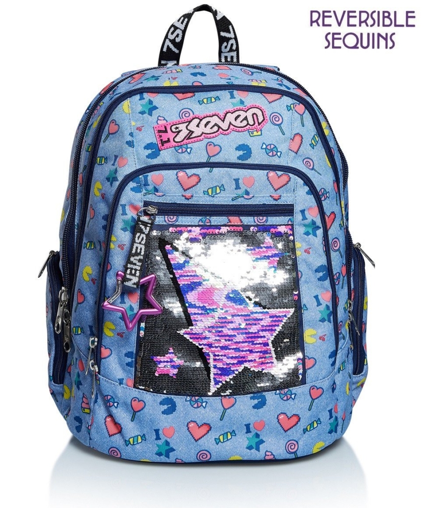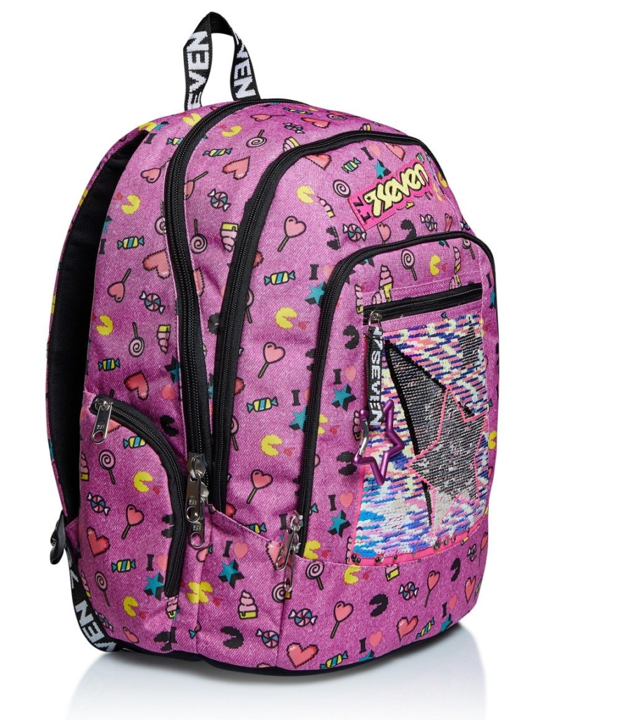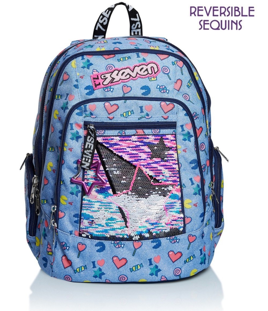 Lo zaino Seven Starry Rainbow ha un look alla moda che cambia grazie alle paillettes reversibili. Dotato di moschettone staccabile, è ideale per affrontare le tue giornate piene di impegni. Nell’ampio doppio scomparto con apertura facilitata tramite zip distribuisci ottimamente il carico sfruttando anche le tasche laterali e quella frontale con organizer. Ha inoltre una tasca per tablet o PC. Lo schienale Ergosystem preformato con fondo integrato e gli spallacci imbottiti e traspiranti lo rendono leggero e confortevole da indossare anche quando è davvero pieno, proteggendoti la schiena. E con gli inserti rifrangenti sarai più visibile per la tua sicurezza.